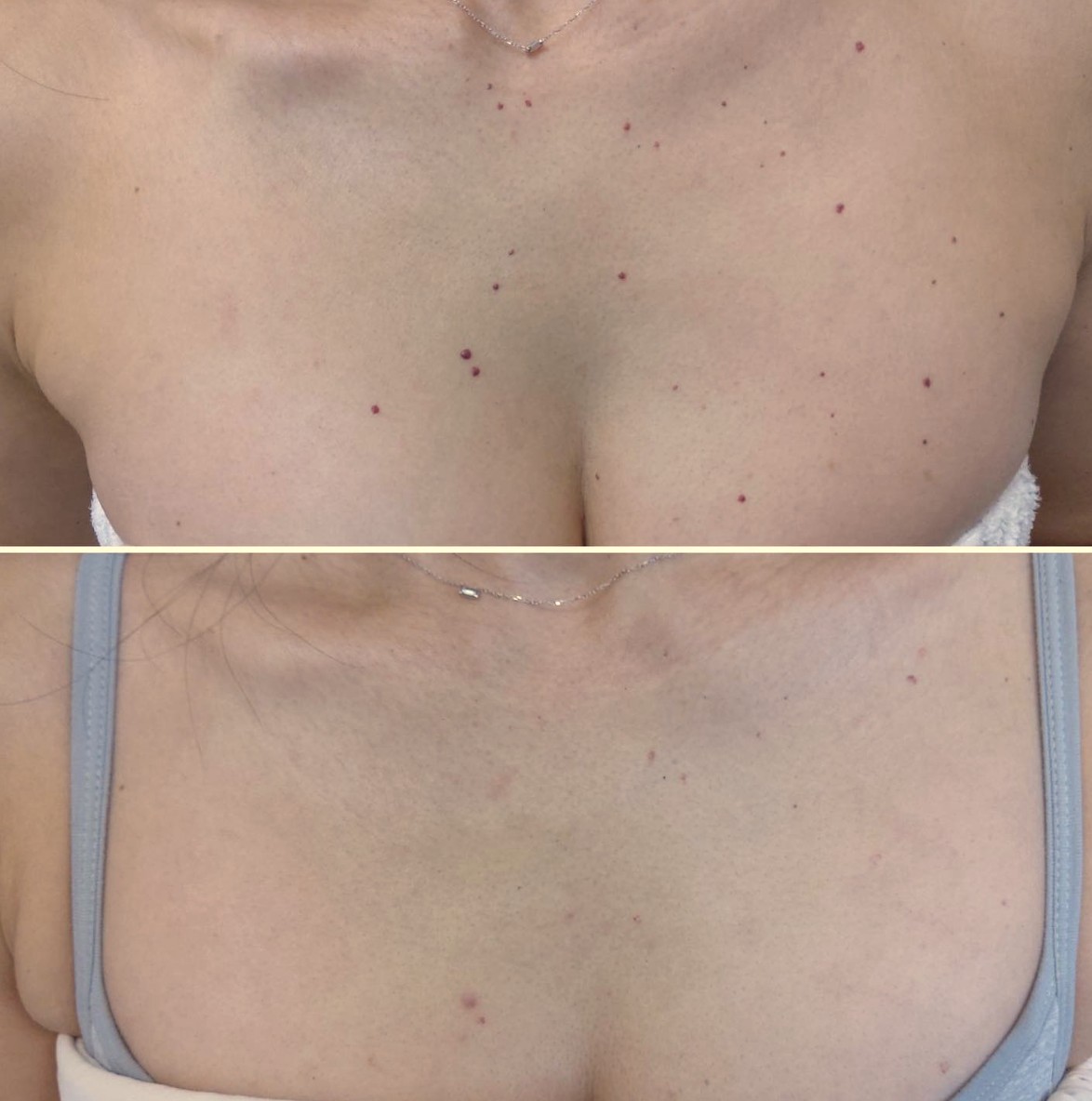 胸口的櫻桃血管瘤(上圖)經過雷射治療後(下圖)
