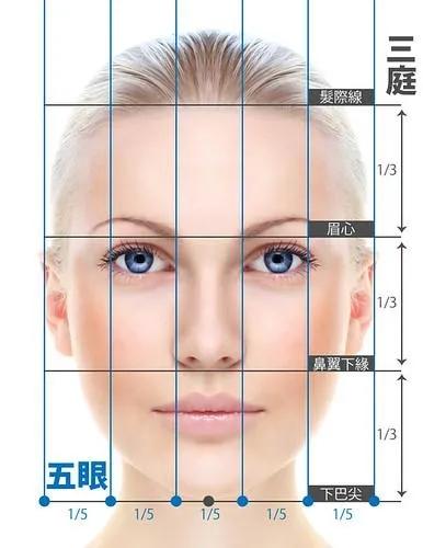 至於如何增強眼神、改善氣色、以及增加微笑感,要從臉部的黃金比例來說起,我們臉部的組成可劃分為三庭五眼: